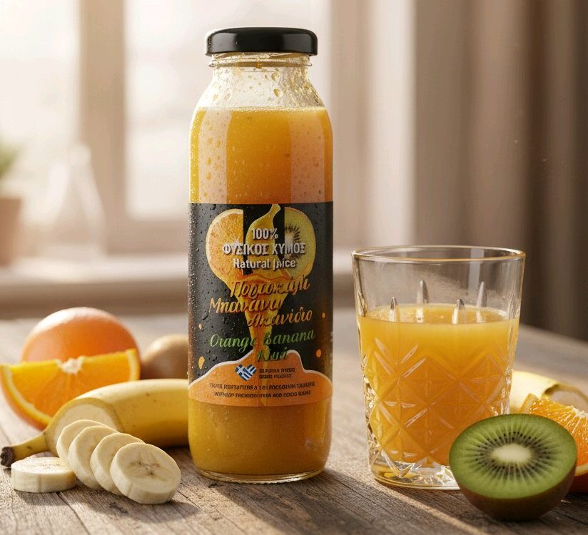 Ένας χυμός γεμάτος ενέργεια και βιταμίνες. Το πορτοκάλι δίνει βάση, η μπανάνα προσθέτει σώμα και το ακτινίδιο ανατρέπει ευχάριστα τη γεύση με ελαφρώς ξινό χαρακτήρα. Τέλεια επιλογή για πρωινή κατανάλωση ή ως φυσικό boost μέσα στη μέρα.